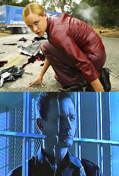T-1000 e T-X. Os vilões desta saga. A interpretação do androide de metal líquido e a originalidade da T-X, garantiram o sucesso destas continuações. Personagens memoráveis que ficaram no mesmo nível que o T-800.